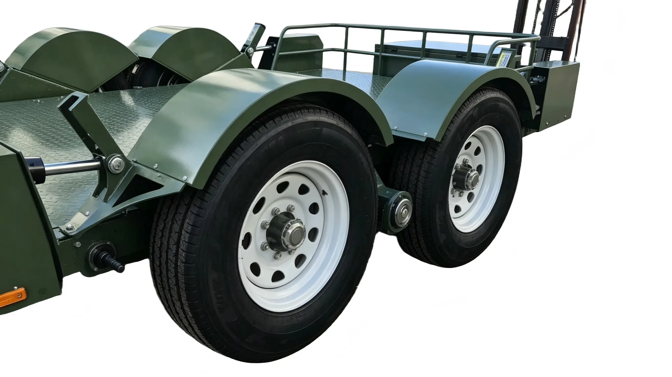 Tento přívěs s dvouosým symetrickým uspořádáním s odolnými nápravami zajišťuje rovnoměrné rozložení nákladu. Jeho kapacita daleko převyšuje obdobné modely s jednou nápravou a nevykazuje žádné výrazné deformace ani při plném 5tunovém zatížení. Je vybaven odpružením listovými pružinami a širokými pneumatikami a nabízí vynikající tlumení nárazů – zajišťuje stabilní vysokorychlostní jízdu bez houpání nebo narážení a zároveň snadno zvládá nerovný terén a staveniště.