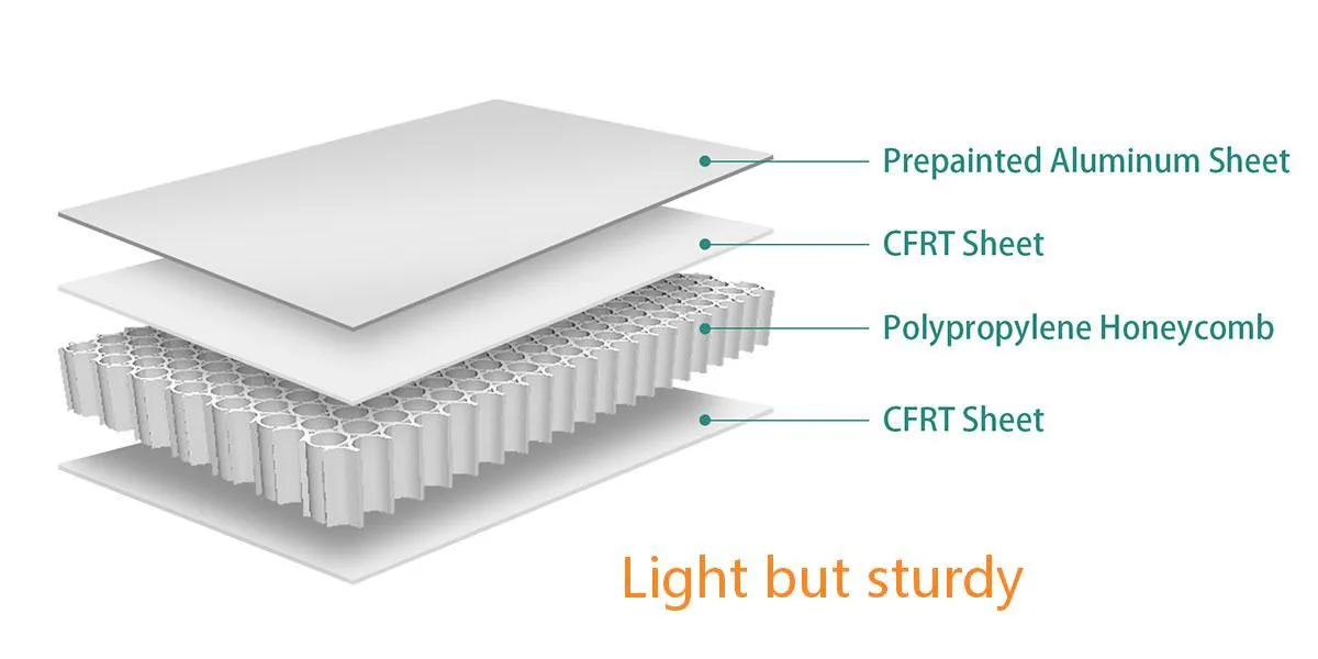 ●Voštinové řešení: Extrémní odlehčení. Naše kompozitní panely nabízejí stejnou nebo větší pevnost než ocel při snížení tělesné hmotnosti o 30 % až 50 %.